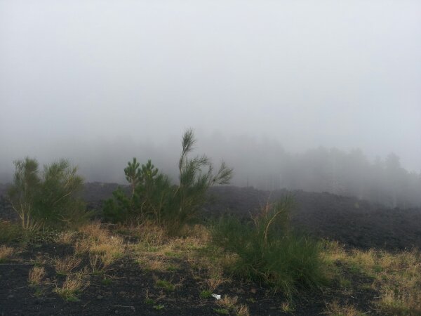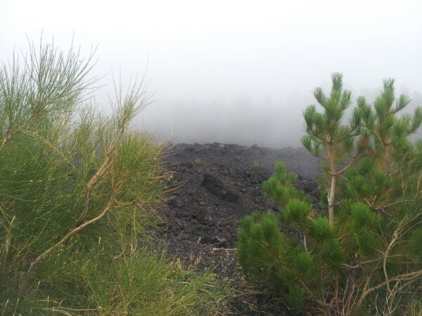 A volte secondo le condizioni meteo tutto lassù intorno, dai boschi si trasforma in distese di nera pietra lavica delle ultime colate ancora non colonizzate da qualche forma di verde e o piante, se poi come un paio di giorni fa ci aggiungi la nebbia bassa ci si può immaginare di essere su un altro pianeta, con la nostra stessa forza di gravità stesse caratteristiche della terra e così via…