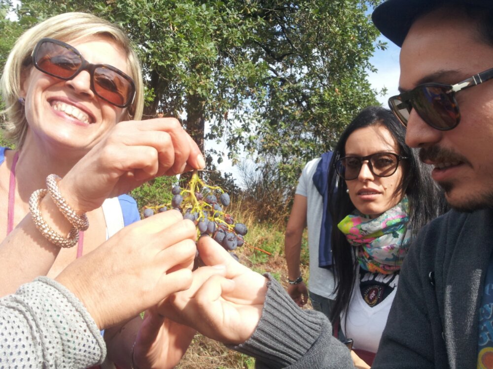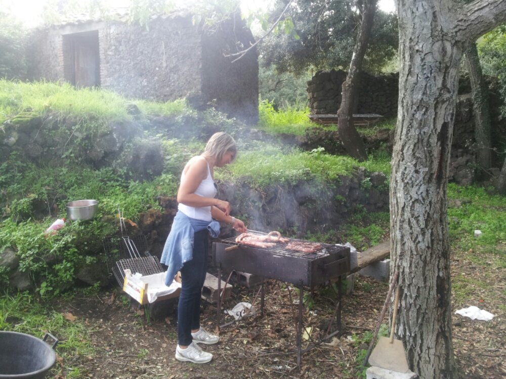 Nessun commento su Eccomi insieme a molti altri gitanti tutti degustatori o pseudo tali ma certo tutti gradiscono :-), fra vigne e vigneti, degustazioni di ottimi vini dell’Etna e squisito cibo “arrusti e mangia… Beviamo Giretto rosso I.G.P. Nerello Mascalese in purezza e per cambiare olfatti sapori e abbinamenti e ritorni al palato, si beve anche il Due Note blend di Nero d’Avola e Nerello Mascalese.