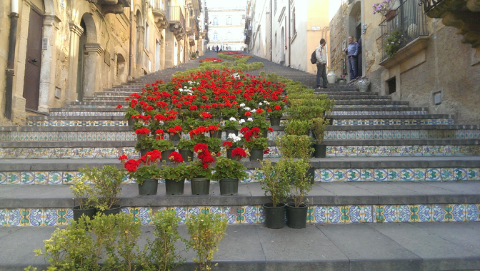 Caltagirone has to be seen at least once in a lifetime, to admire the stunning flower pottered staircase show, honouring the Madonna of Conadomini, that happens once a year displaying on the wonderful craft ceramic decorated staircase and its 142 steps of Scalinata Santa Maria del Monte.