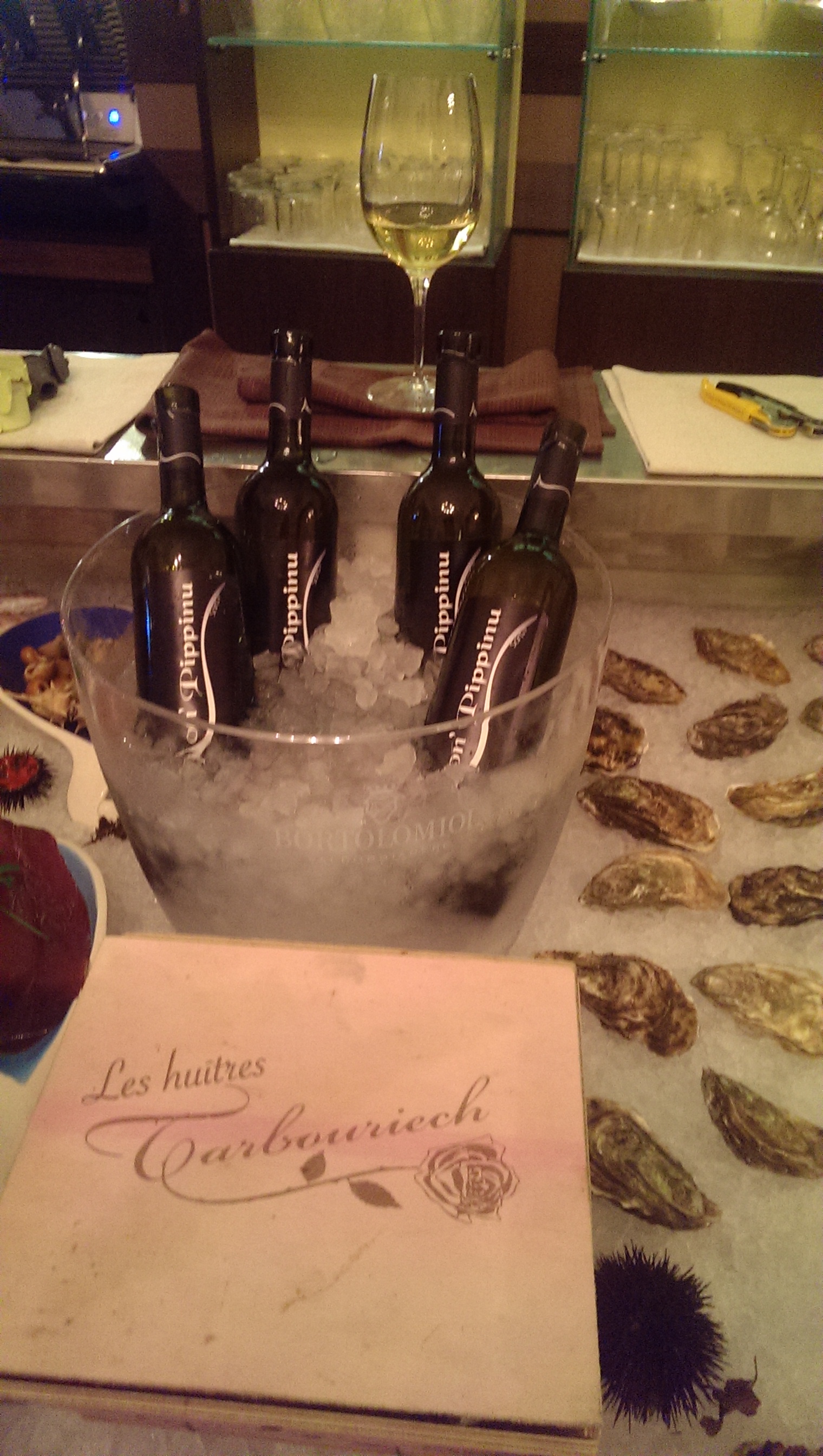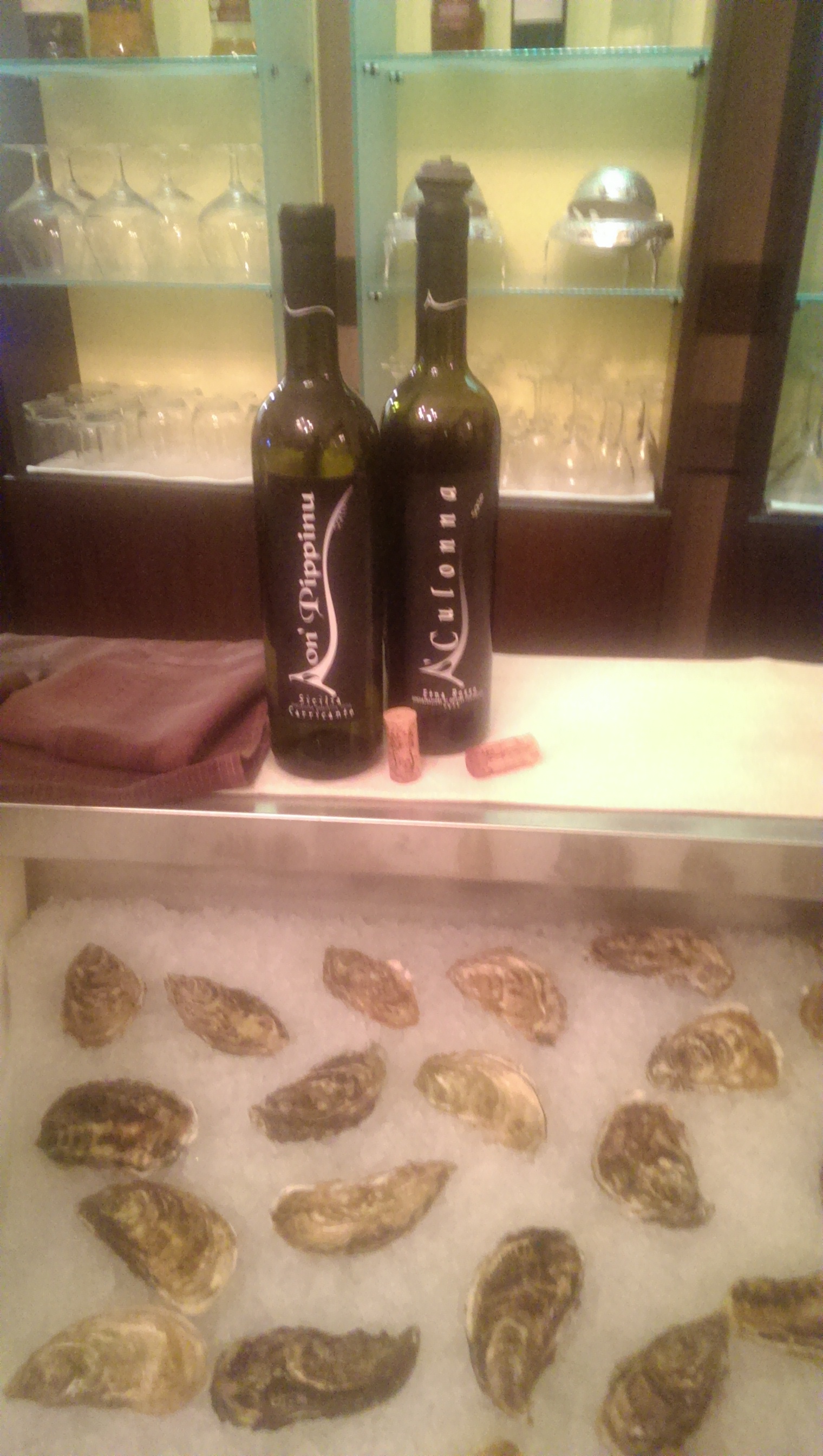 A Culonna Etna rosso di vini Scirto affaccia su varietà di Ostriche di L'Acquario Degustazione & Oyster Bar