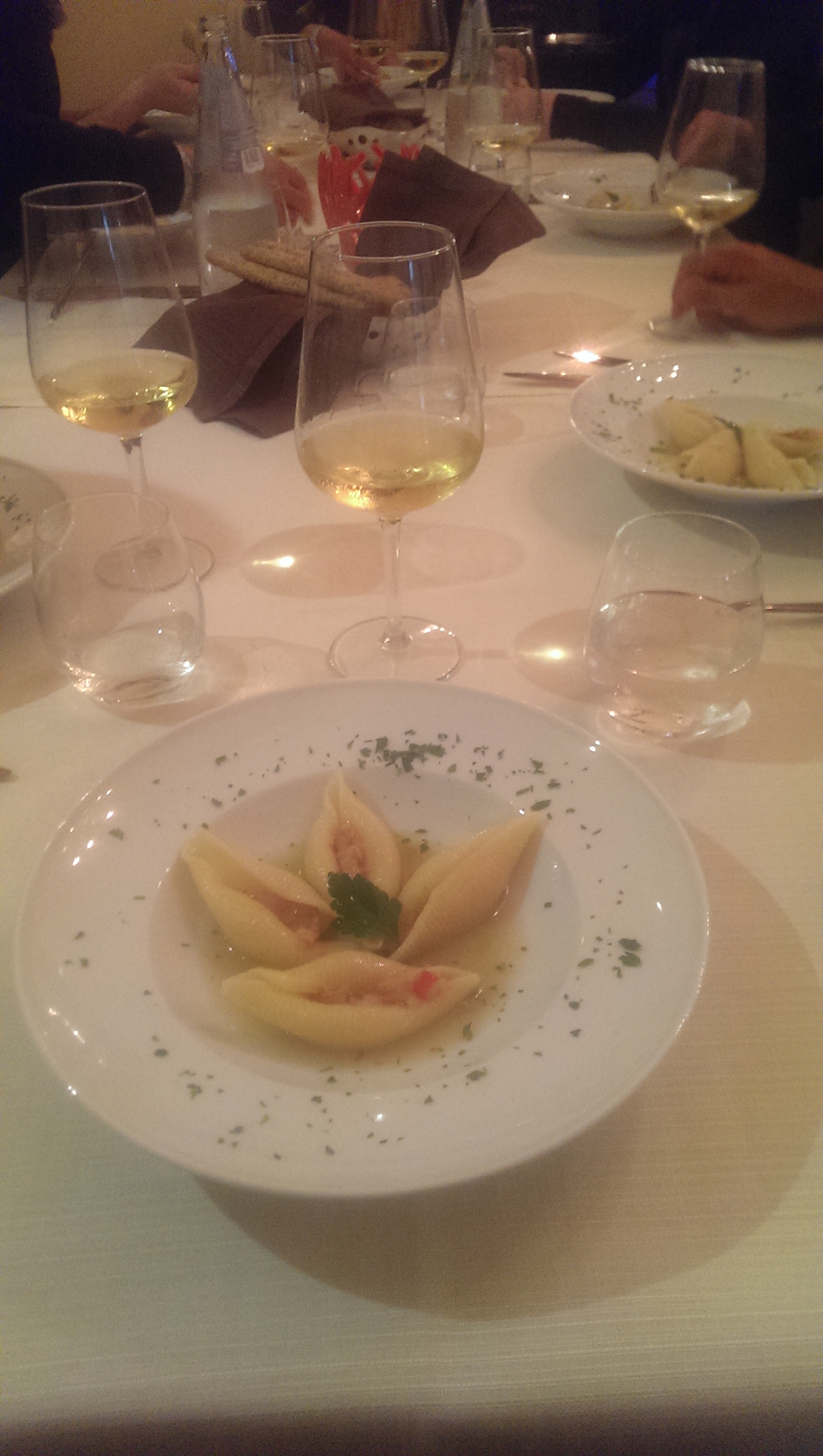 Abbiamo apprezzato in questa serata i frutti del mare in abbinamento ai vini del vulcano oltre alla piacevolissima ambience e l’allegra compagnia.