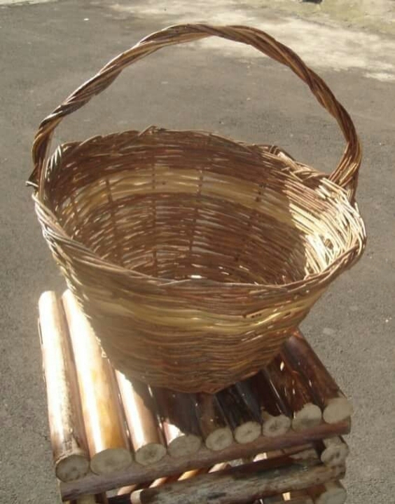 Cesta in canna e vimini dell’Etna fatta artigianalmente e ovviamente, sotto la cesta il tipico sgabello “furrizzu” fatto da papà Alfio, con legno di Ferula ecologico.