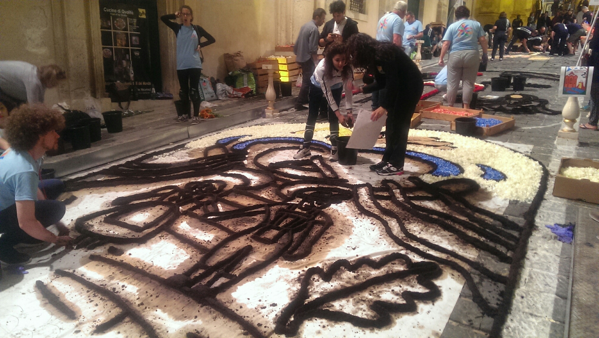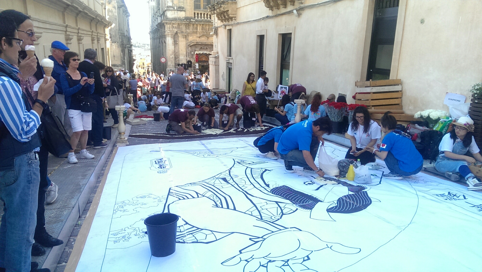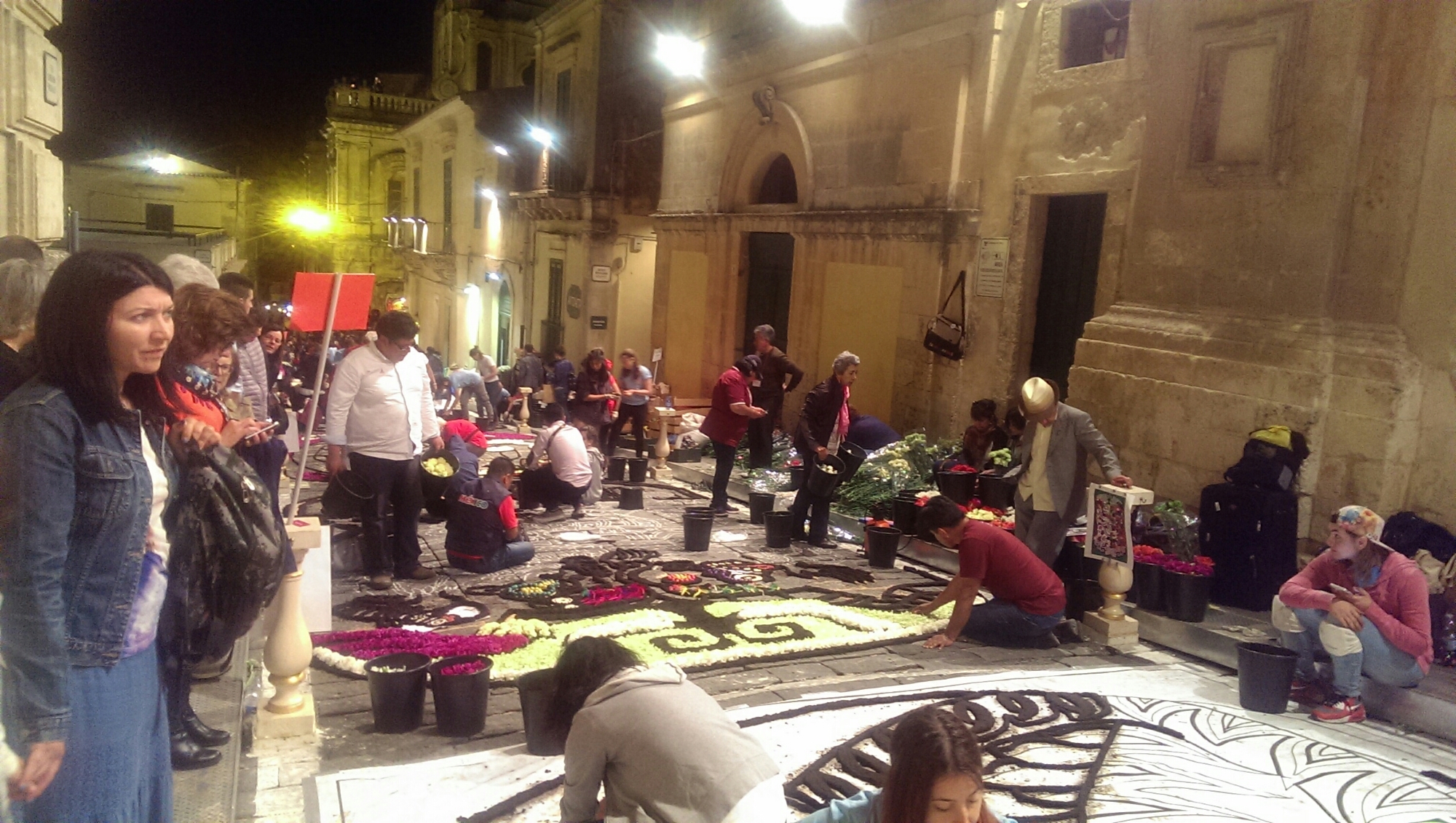 Flower decorated streets, like a carpet of flower, the famous Infiorata of Noto town, not only Baroque, architecture, art, and history, sea and tipical food.