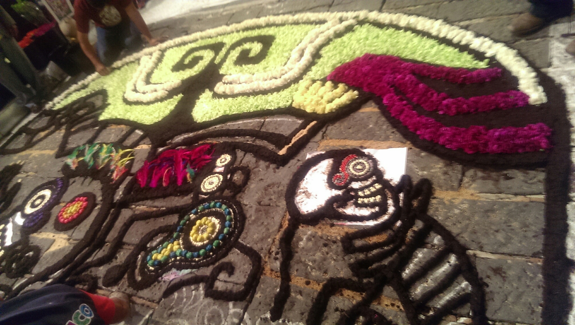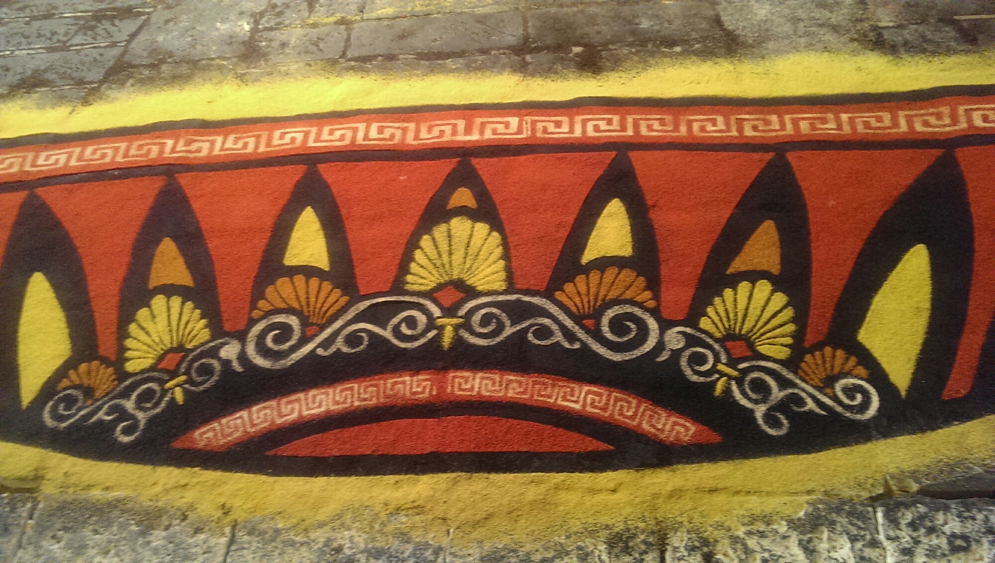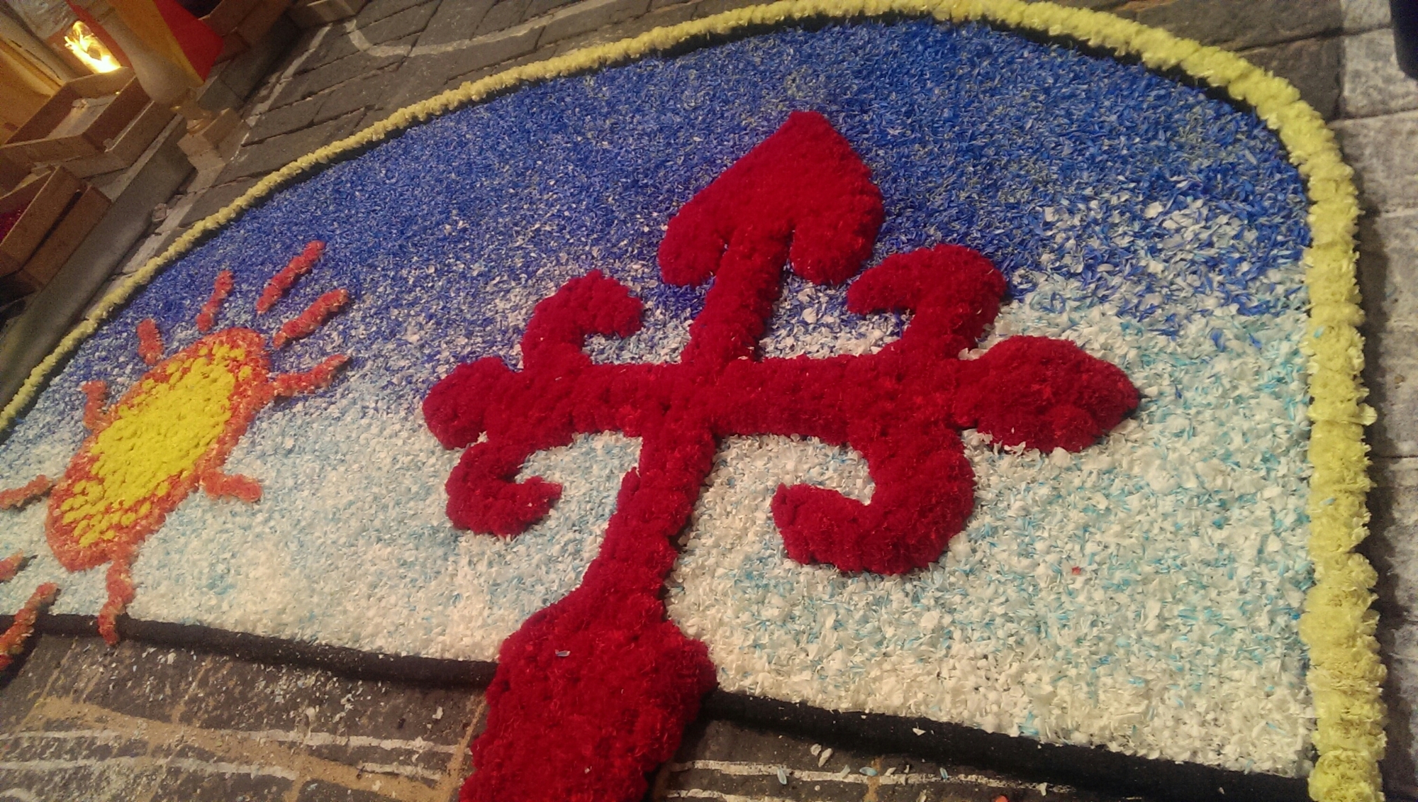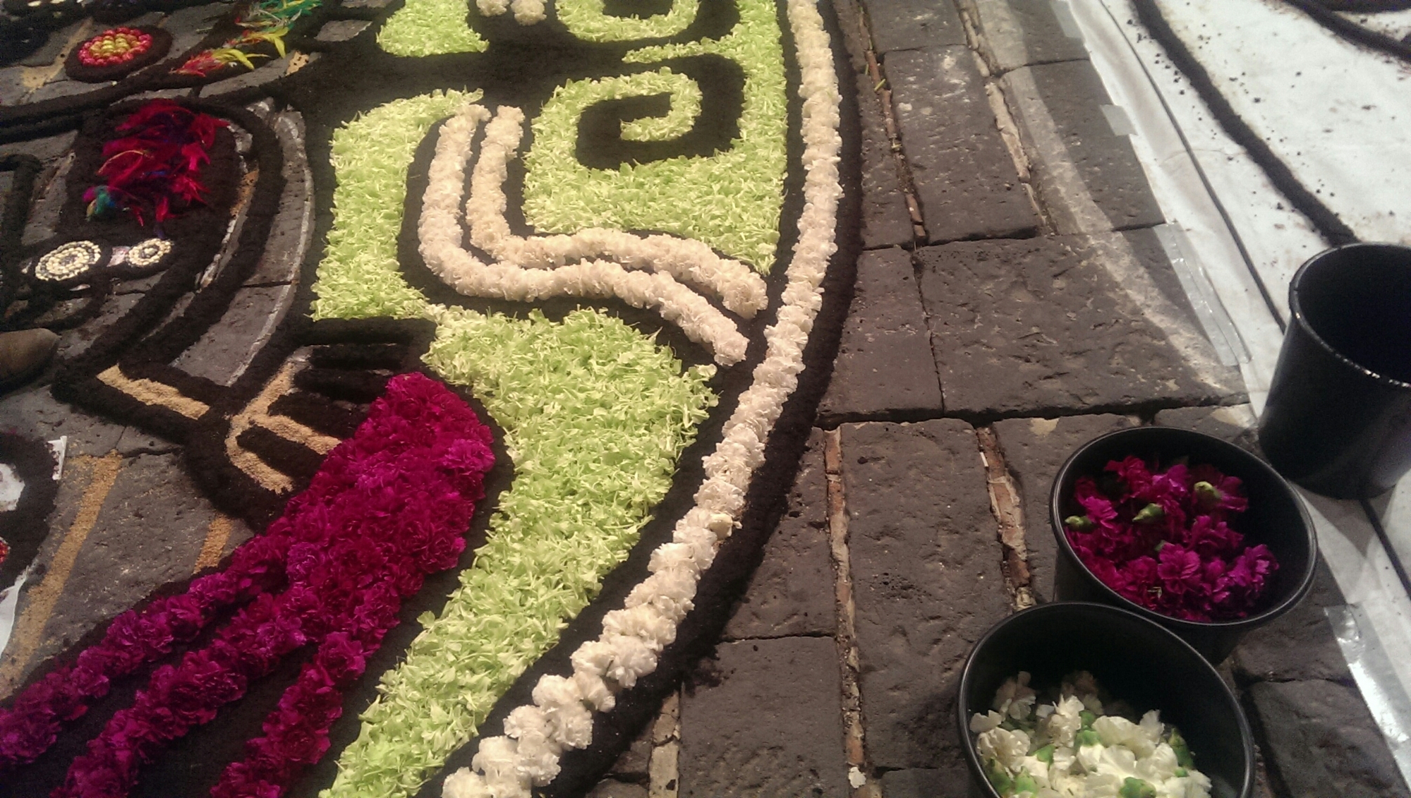 Let’s discover such a stunning flowering art masterpiece they create for current edition, artists fom several lands of the world, they are at work to decorate the drawings on the floor with petals flower.