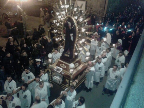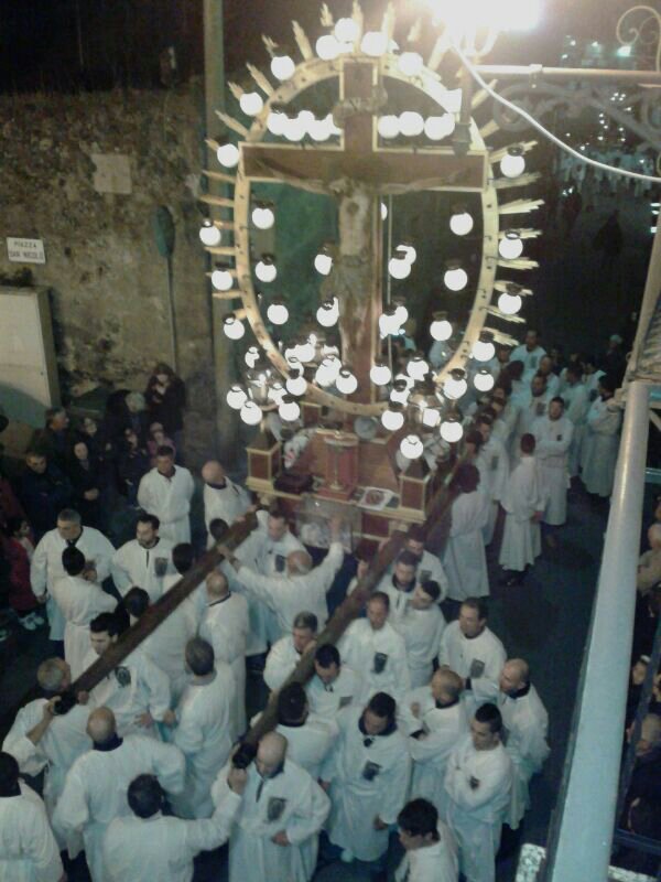Holy Friday live images, in Randazzo medieval village, Easter week.