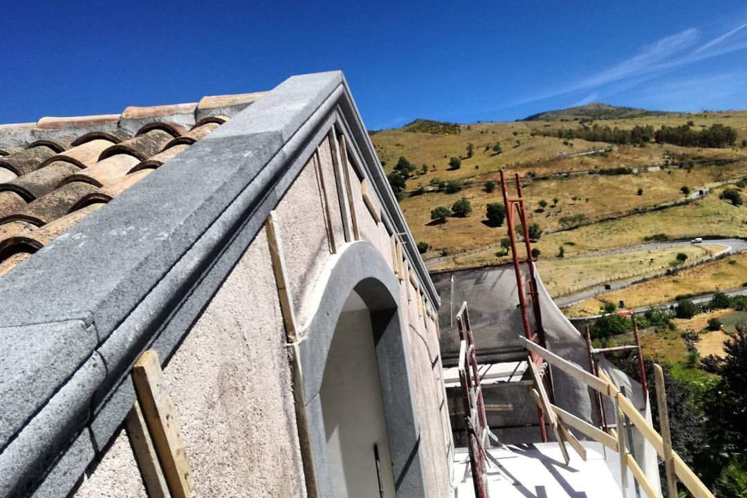 Panorama for architecture lovers, when architect and building team realizes a complete home, house restoration, facade fronton, pediment, gable this time in lava stone precious one by Etna.
