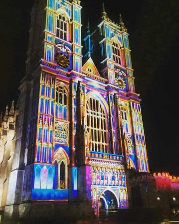 Londra Abbazia di Westminster durante il “festival Lumiere“, festival delle luci,