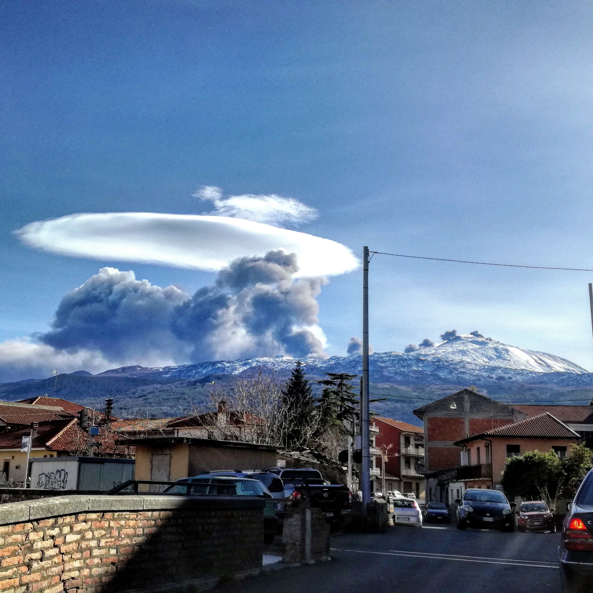 Oggi alla Contessa “a muntagna”, è scappato via il cappello, quella tipica nube che siamo usi vedere in sommità, forse spinto da parossismi eruzione in cratere sommitale che hanno creato fratture colonne di fumo polveri, cenere vulcanica colate laviche di lava incandescente e scosse di terremoto nel e dal #cratere sommitale di NordEst