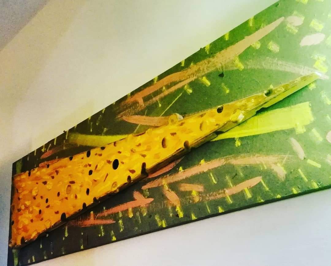 “Cheese on the wall” Oil painting on Canvas & rice paper here Saverio shows us by his home design. Is that a kind of creative recycle?